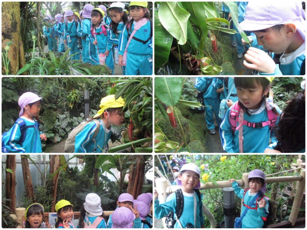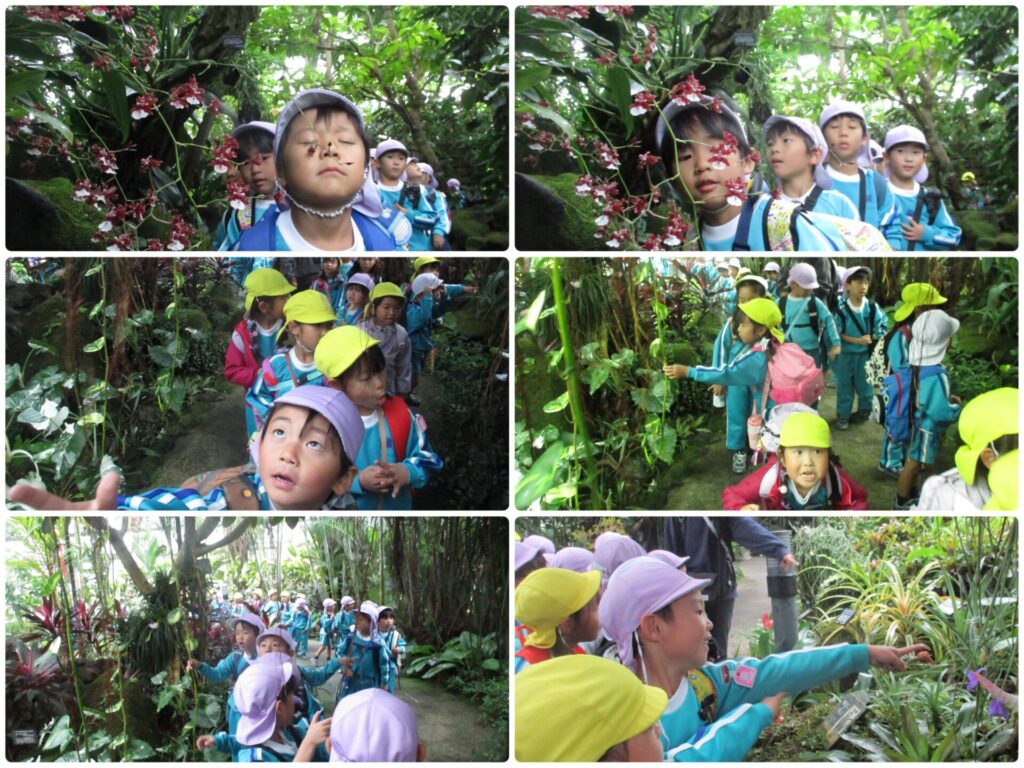 「バナナの木みーつけた🍌」「こっちはバナナの匂いがするお花だよー」