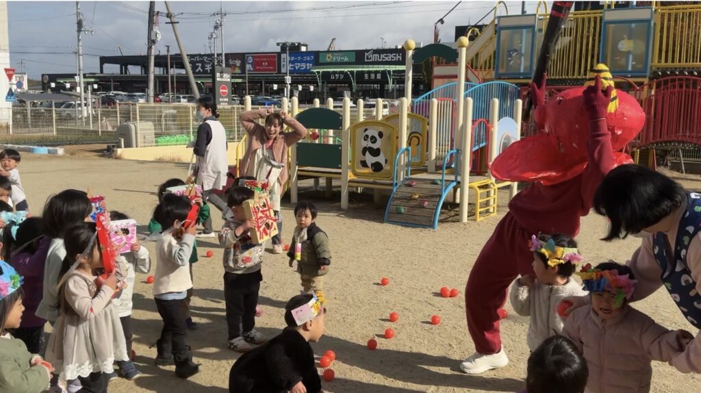 2月3日 幼稚園に優しい鬼さんがやってきました。