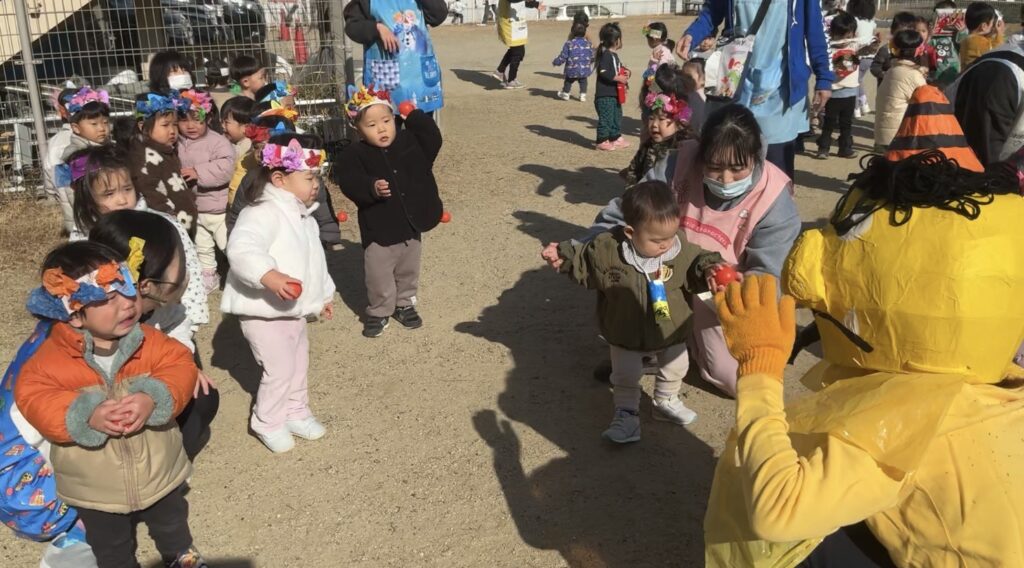 ちょっぴり泣いてしまったお友だちもいましたが、頑張って豆を投げていましたよ✨