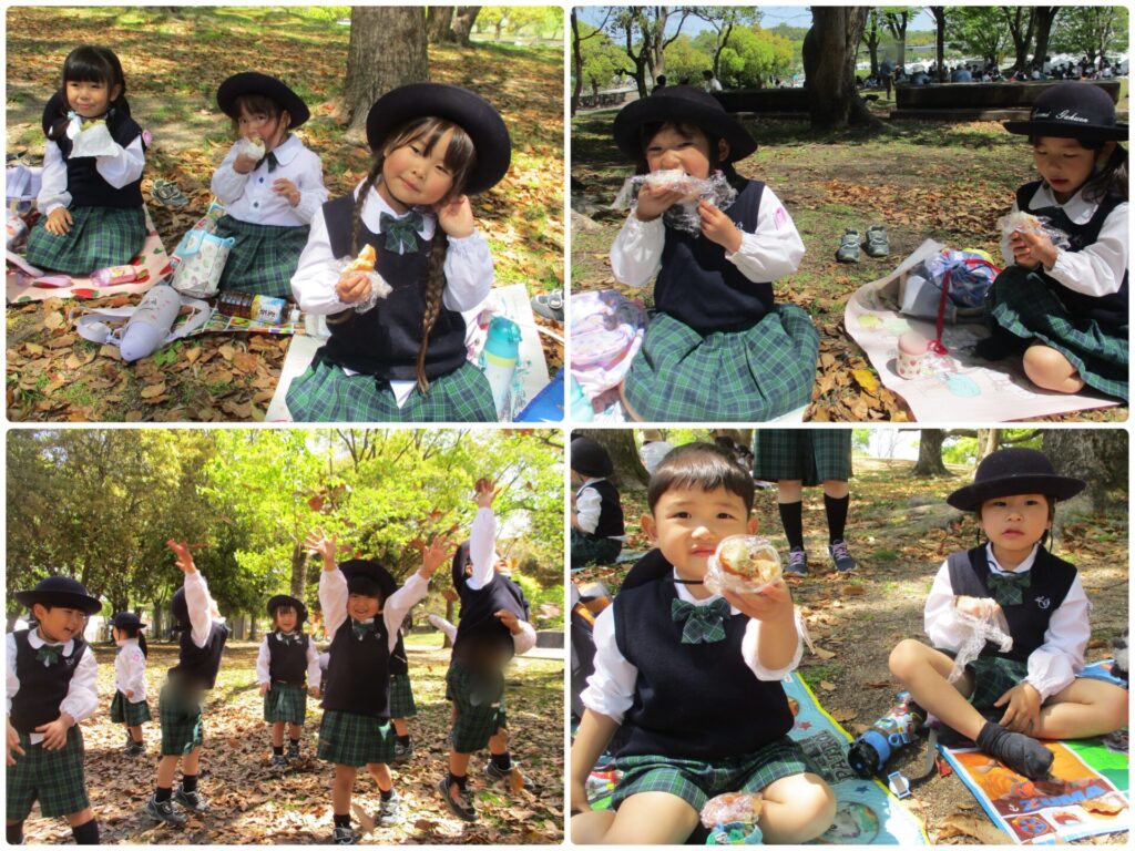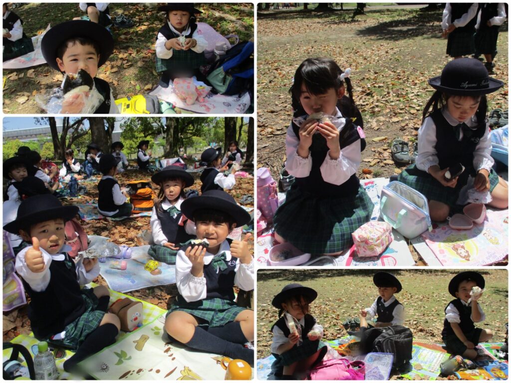 「おいし〜い👍」「お外で食べると気持ちいいね〜‼️」